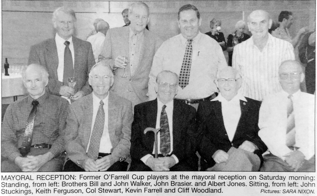 - Former O’Farrell Cup players, Bill and John Walker, John Brazier, Albert Jones, John Stuckings, Keith Ferguson, Col Stewart, Kevin Farrell, Cliff Woodland, Warren Smith, Steve Rixon and Stan Dacey are pictured attending a mayoral reception to mark the 75th anniversary of the O’Farrell Cup cricket competition.