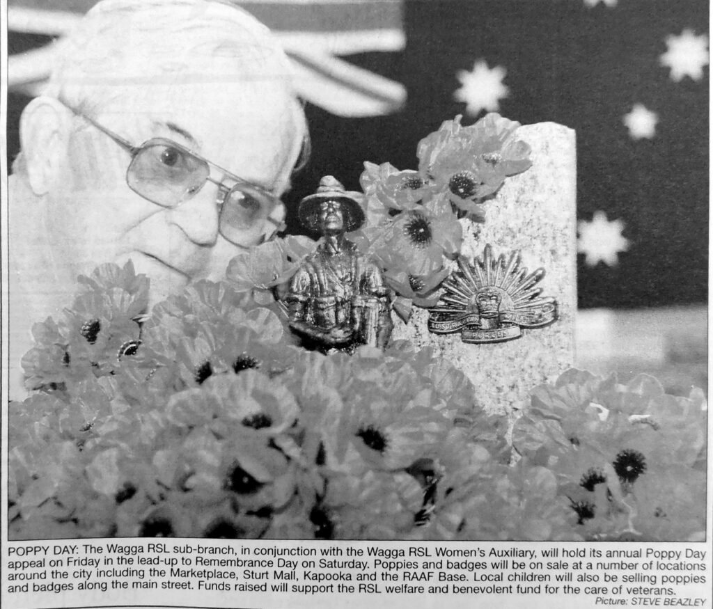 - The Wagga RSL sub-branch and Wagga RSL Women’s Auxiliary are holding an annual Poppy Day Appeal in the lead-up to Remembrance Day.