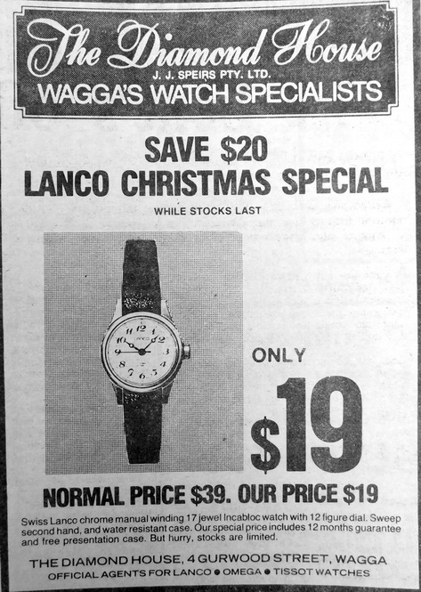 - Hardys are advertising a range of Malvern Star bicycles and the Diamond House, J J Speirs are advertising a Lanco watch reduced to $19 for Christmas.