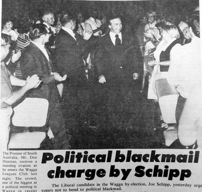 - The Premier of South Australia, Mr Don Dunstan, attracted a crowd of more than 750 people to the Wagga Leagues Club – the largest political gathering seen in Wagga for many years.