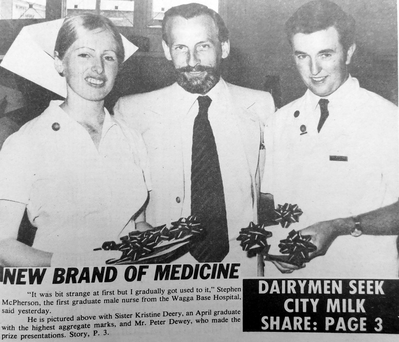 - Stephen McPherson graduated as the first graduate male nurse from Wagga Base Hospital.