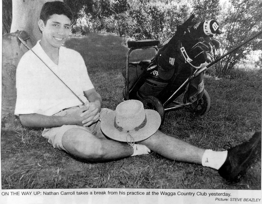 - Nathan Carroll is pictured taking a break from his practice at the Wagga Country Club.