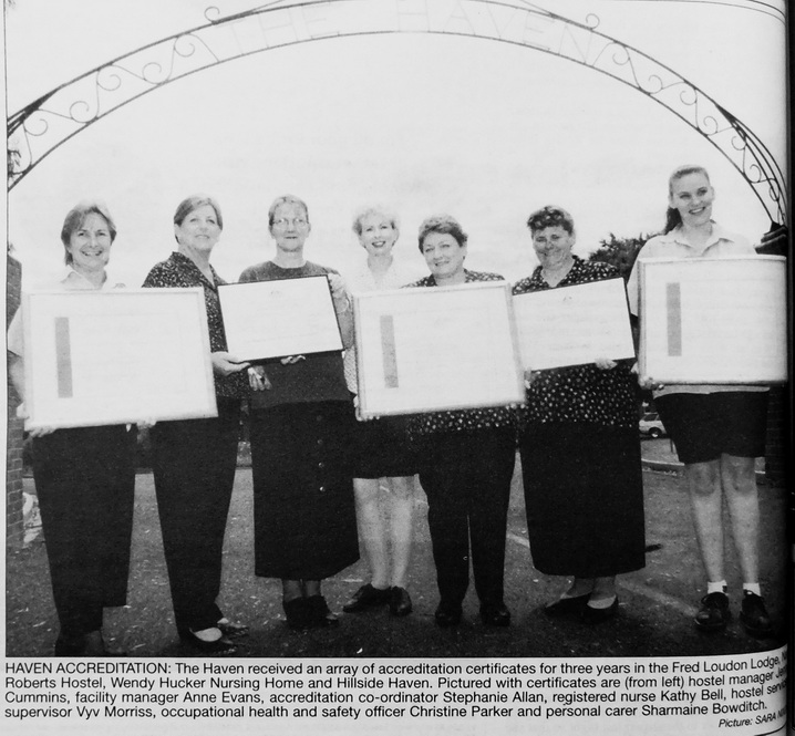 - The Haven received an array of accreditation certificates for three years in the Fred Loudon Lodge, Nan Roberts Hostel, Wendy Hucker Nursing Home and Hillside Haven.
