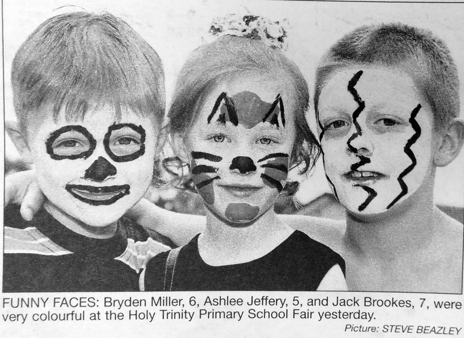 - Bryden Miller, Ashlee Jeffery and Jack Brookes are pictured with their faces painted at the Holy Trinity Primary School Fete.