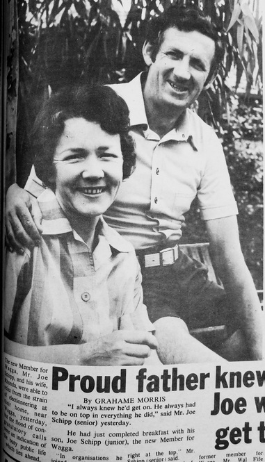 - Wagga farmer, Joe Schipp, retained the state seat of Wagga for the Liberal Party with an early count before preferences giving him 8801 votes compared to his nearest rival, Dick Gorman with 7353 votes.