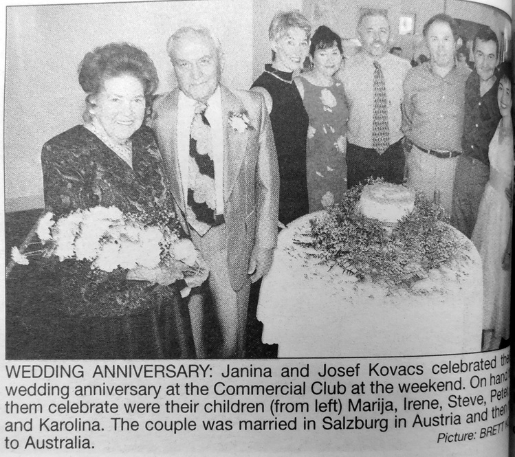 - Janina and Josef Kovacs are pictured celebrating their wedding anniversary at the Commercial Club with their children Marija, Irene, Steve, Peter and Karolina.