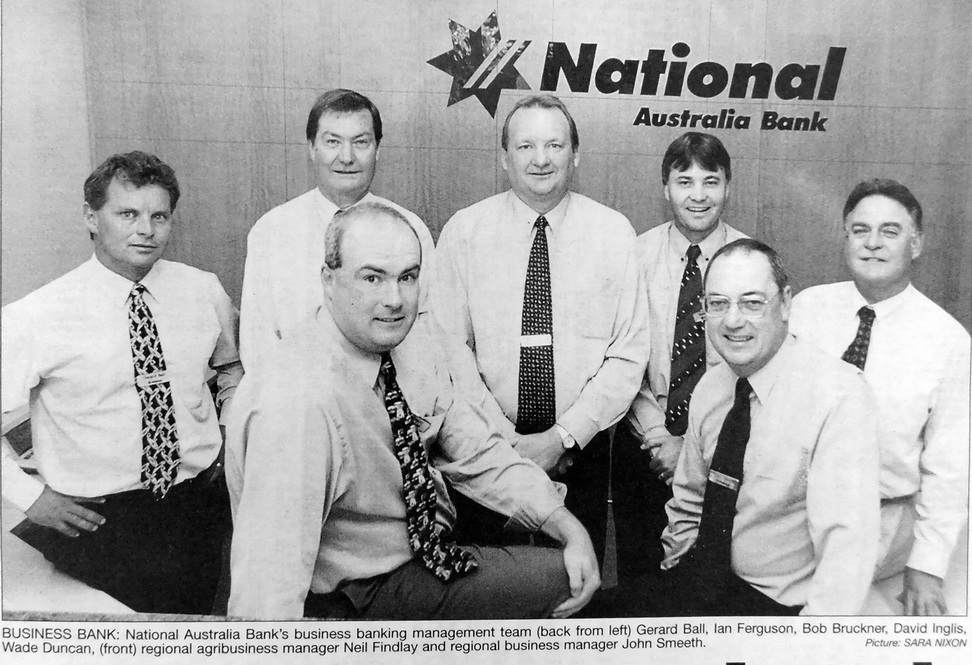 - National Australia Bank’s business banking management team, Gerard Ball, Ian Ferguson, Bob Bruckner, David Inglis, Wade Duncan, Neil Findlay and John Smeeth are featured promoting their agribusiness credentials.