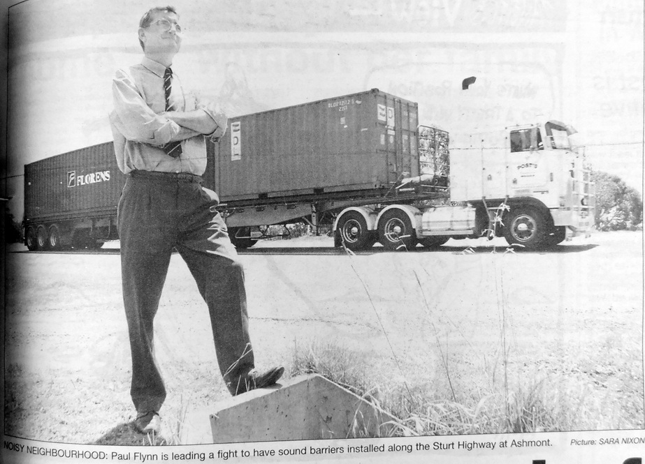 - Paul Flynn, a resident of the historic Flowerdale homestead, is leading a fight to have sound barriers installed along the Sturt Highway at Ashmont.