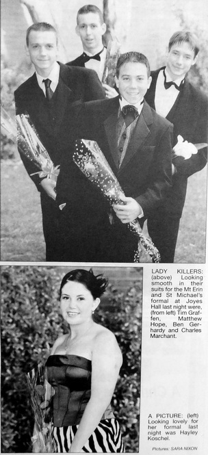 - Tim Graffen, Matthew Hope, Ben Gerhardy, Charles Marchant and Hayley Koschel were among those attending the Mt Erin and St Michael’s formal at Joyes Hall.