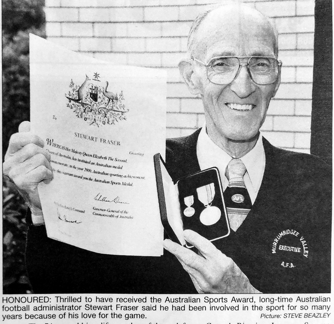 - Stewart Fraser and Lance Seaman, two of the Riverina’s most respected Australian Football administrators have been awarded an Australia Sports Award recognising their remarkable contributions.