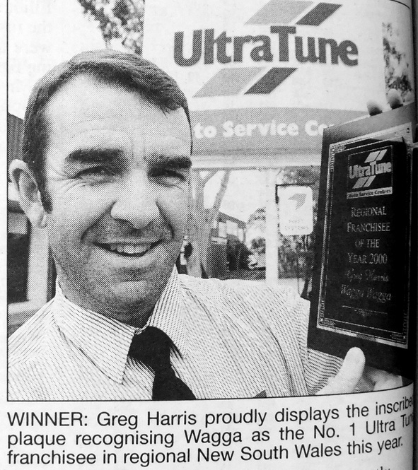 - Greg Harris displayed an inscribed plaque recognising Wagga’s Ultra Tune franchise as the best in regional New South Wales.