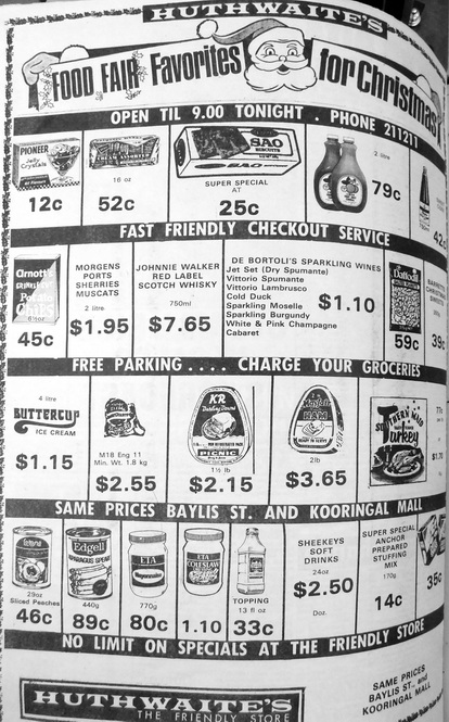 - Huthwaites are advertising Sao biscuits for 25 cents, Pioneer Jelly Crystals for 12 cents each and Johnnie Walker Red Label Scotch Whisky, 750ml for $7.65.