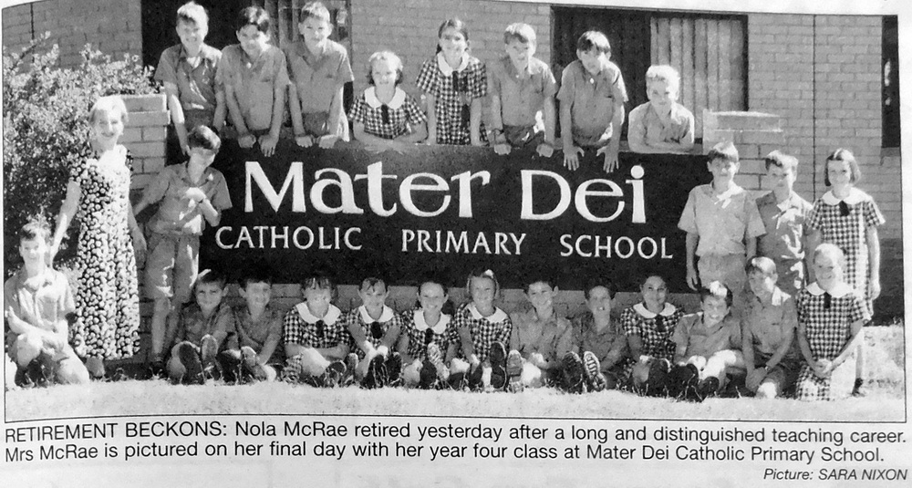 - Nola McRae retired at Mater Dei Catholic Primary School after a career which has spanned more than four decades.