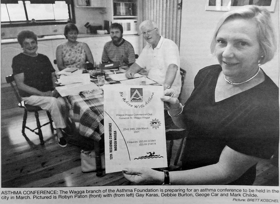 - Robyn Paton, Gay Karas, Debbie Burton, George Car and Mark Childe from the Wagga branch of the Asthma Foundation are pictured preparing for an asthma conference to be held in Wagga in March.