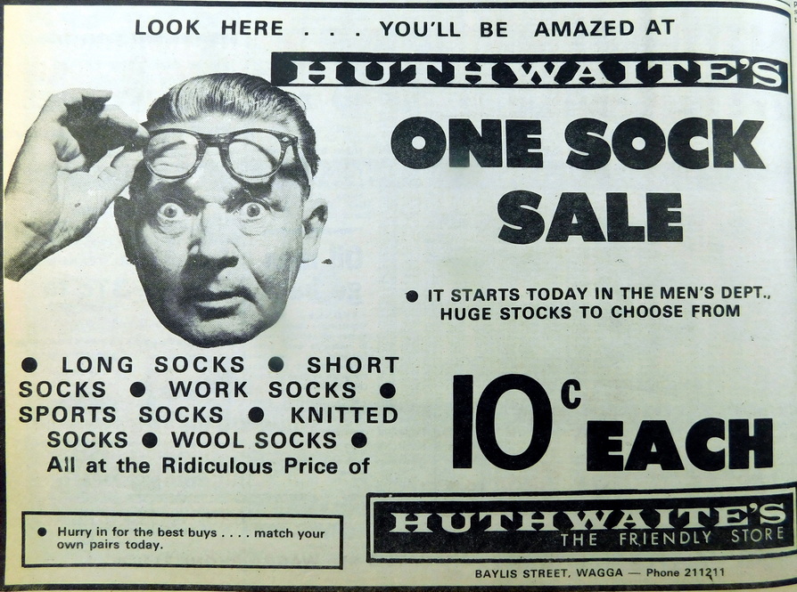 - Huthwaites are holding a One Sock Sale with socks selling for just 10 cents each.