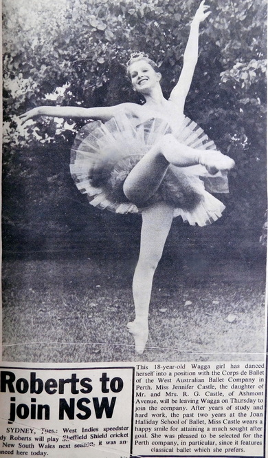 - After years of study and hard work, 18-year-old Miss Jennifer Castle is leaving Wagga this week to join the West Australian Ballet Company in Perth.