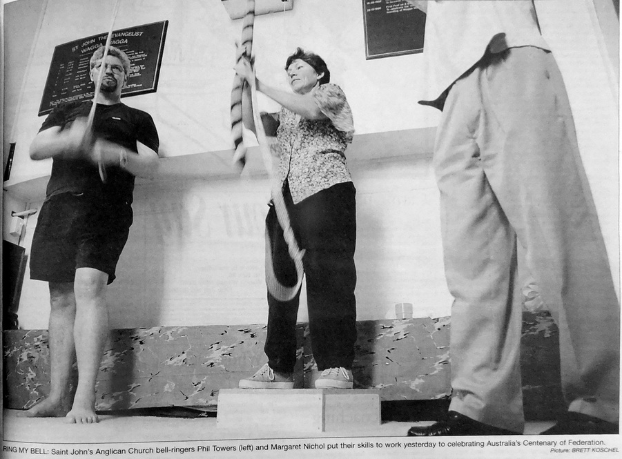 - Bell ringers at St Johns Anglican Church, Phil Towers and Margaret Nichol put their bell ringing skills to work to join a national celebration of the centenary of Australia’s Federation.
