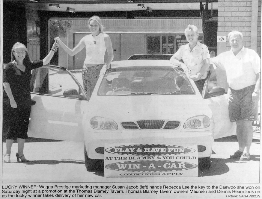 - Rebecca Lee won a Daewoo car in a promotion at the Thomas Blamey Tavern.