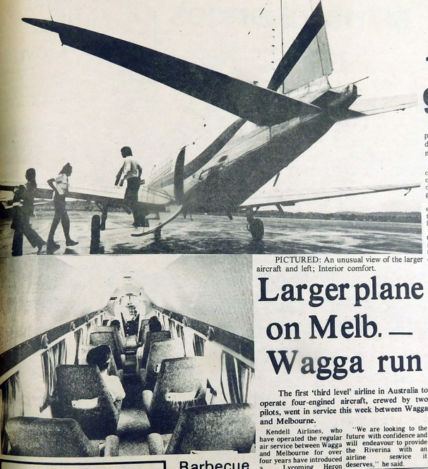 - Kendell Airlines who have operated a regular air service between Wagga and Melbourne for over four years have introduced a larger Lycoming Heron aircraft capable of carrying up to 17 passengers on the route.