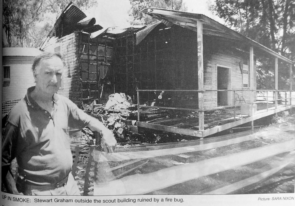 - Stewart Graham is pictured outside the 1st Lake Albert Scout Group Hall in Angel Street which was destroyed by a firebug.
