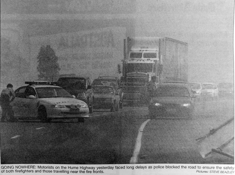 - There were long delays as police blocked the Hume Highway to ensure the safety of firefighters and those travelling near fire fronts at Tarcutta.