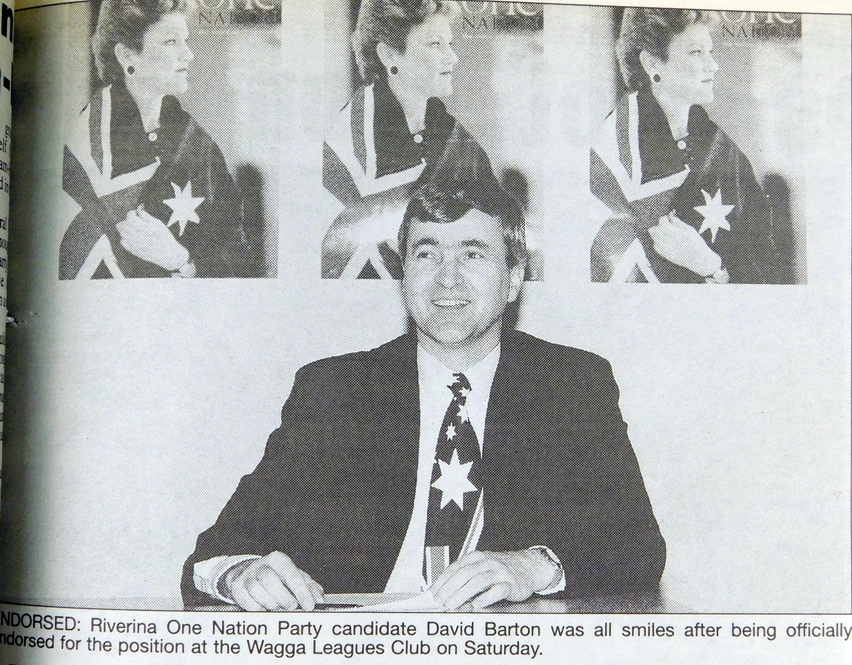 - Riverina One Nation candidate, David Barton was officially endorsed at the Wagga Leagues Club this week.