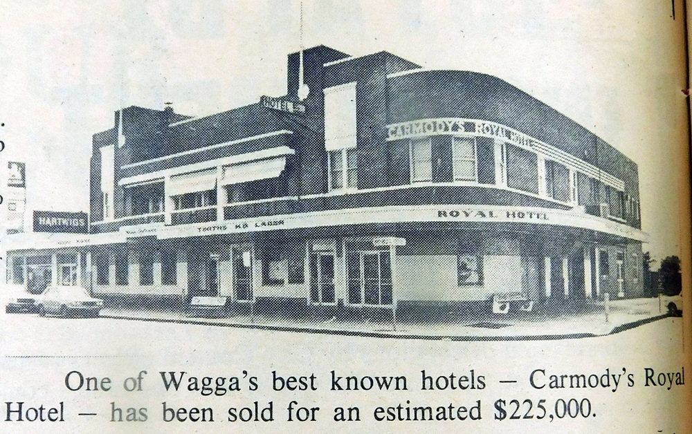 - One of Wagga’s best-known hotels, Carmody’s Royal Hotel, has been sold for an estimated $225,000 to the McCoullough family.
