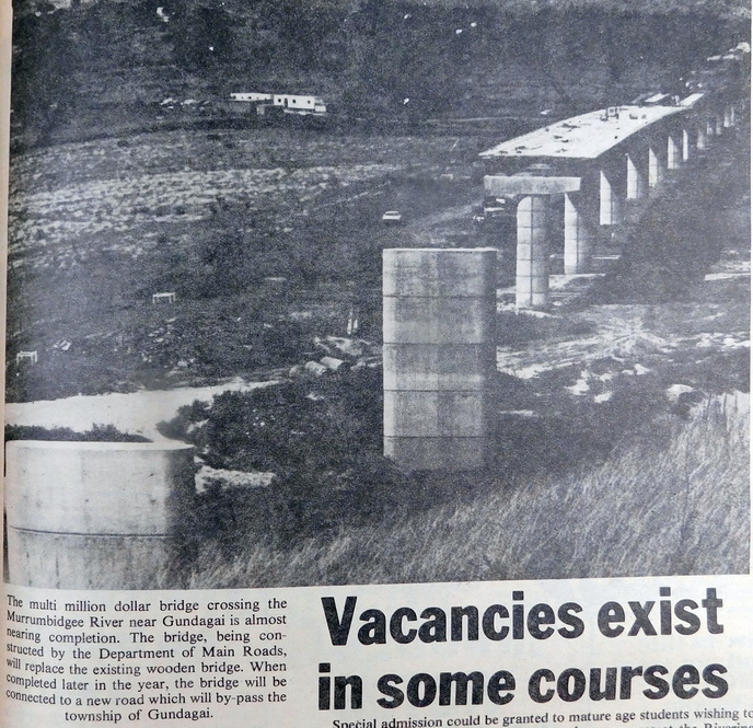 - The multi-million dollar bridge crossing the Murrumbidgee River near Gundagai is nearing completion.