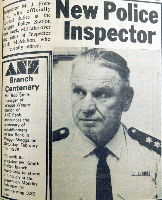 - Inspector M J Frendin has started duties at Wagga Police Station following the recent retirement of Inspector Dick McMahon.