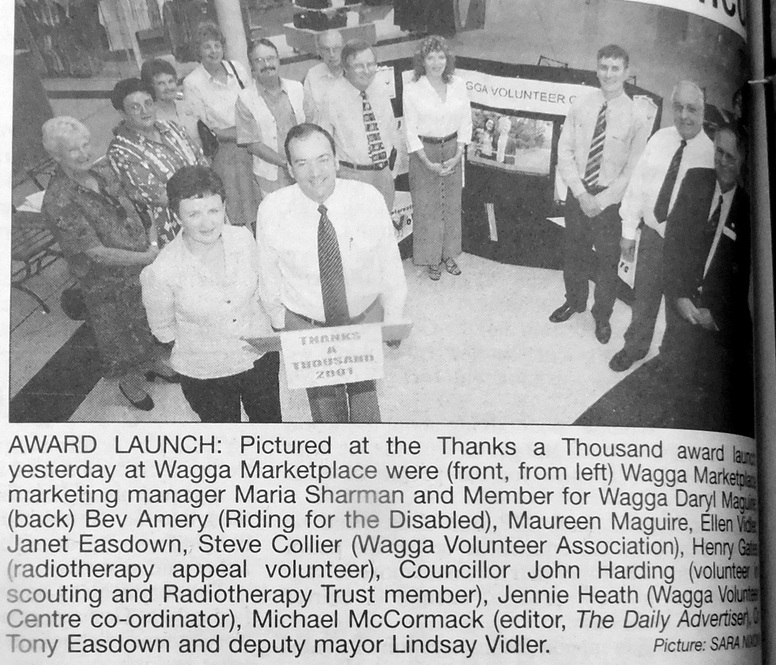 - “Thanks a thousand awards” have been sponsored by the Daily Advertiser and the Wagga Marketplace to recognise silent achievers from the community and to gain some recognition for their voluntary efforts.