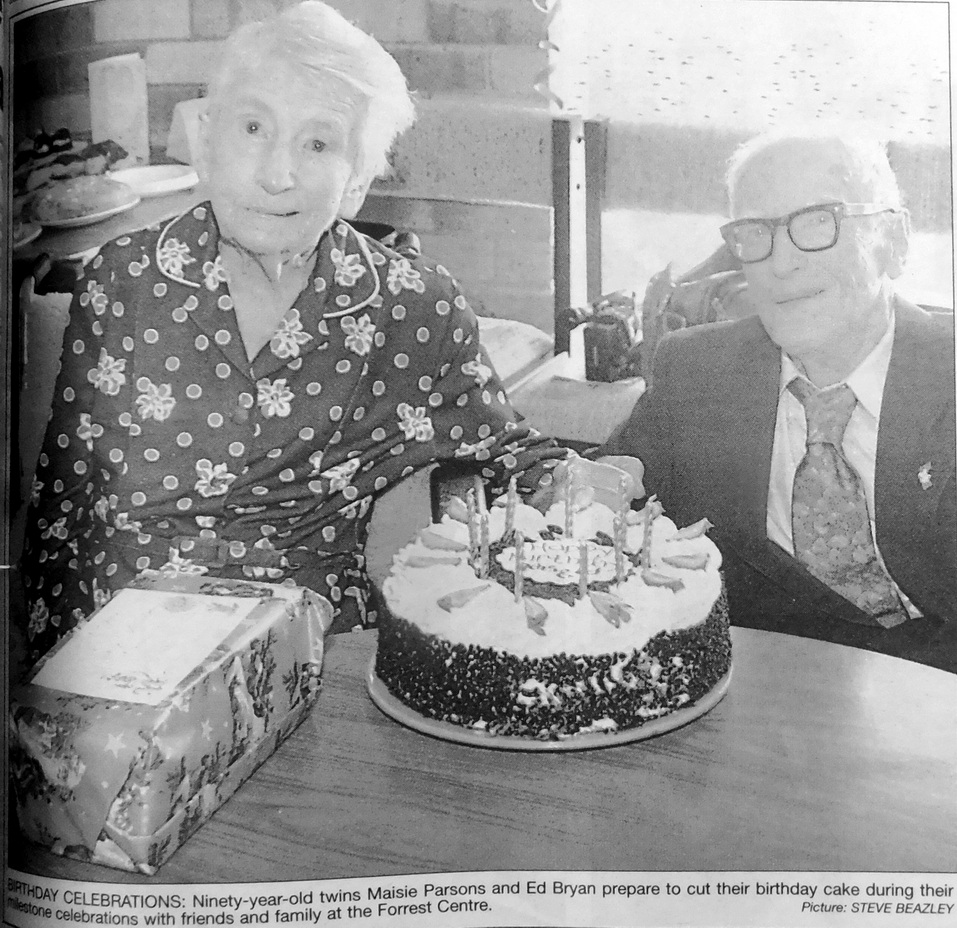- Ninety-year-old twins Maisie Parsons and Ed Bryan celebrated their birthdays with friends and family at the Forrest Centre.