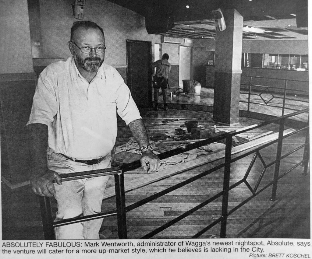 - Mark Wentworth, administrator of Wagga’s newest nightspot, Absolute, at 146 Fitzmaurice Street, says the venture will cater for a more up-market style, which he believes is lacking in the city.