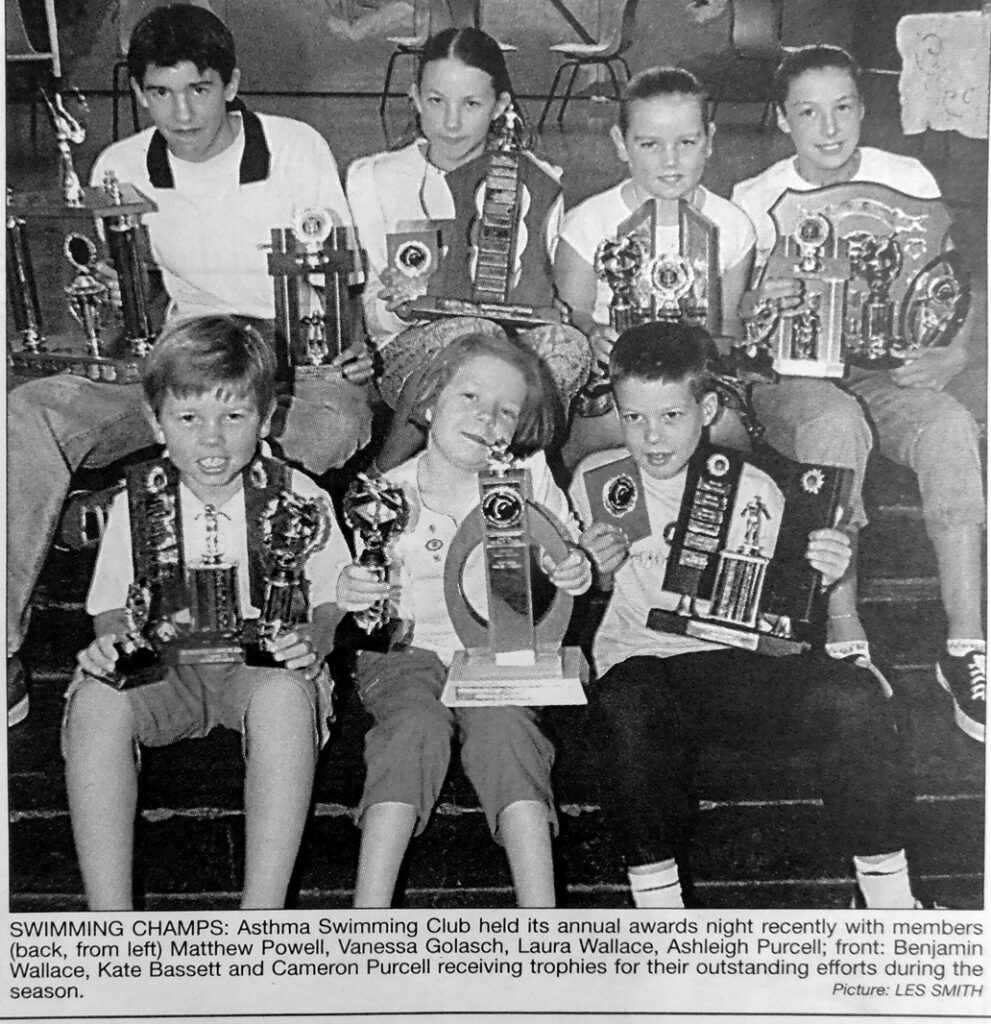 - Matthew Powell, Vanessa Golasch, Laura Wallace, Ashleigh Purcell, Benjamin Wallace, Kate Bassett and Cameron Purcell were among those receiving trophies when Wagga’s Asthma Swimming Club held its annual awards night.