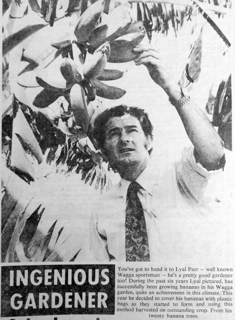 - Well-known Wagga sportsman, Lyal Parr, has harvested an outstanding crop from his twenty banana trees, which he has been growing successfully for six years.