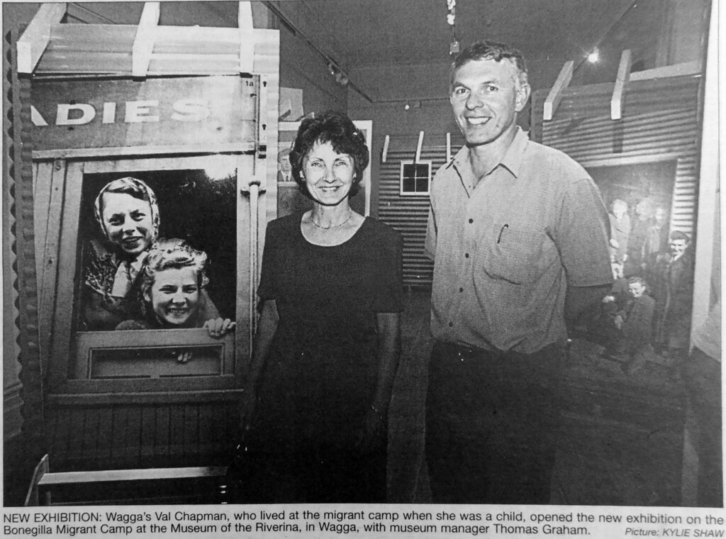 - Wagga’s Val Chapman, who lived at the migrant camp as a child, opened a new exhibition on the Bonegilla Migrant Camp at the Museum of the Riverina with museum manager Thomas Graham.