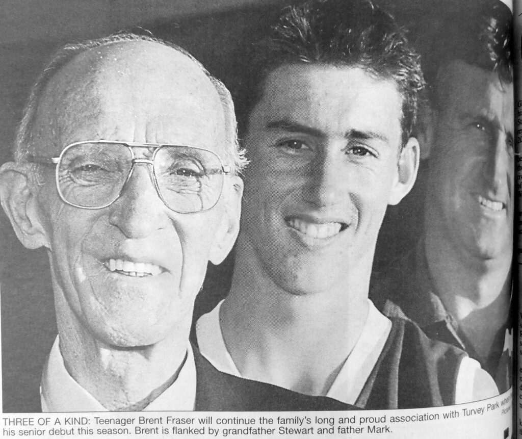 - Teenager Brent Fraser, who is continuing his family’s long association with Turvey by making his senior debut this season, is pictured with his father, Mark and grandfather Stewart.