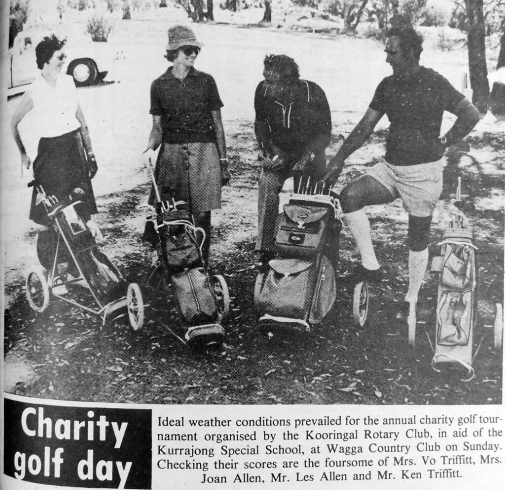- Mrs Vo Triffett, Mrs Joan Allen, Mr Les Allen and Mr Ken Triffett made up a foursome for the annual charity golf tournament organised by Kooringal Rotary Club in aid of the Kurrajong Special School.