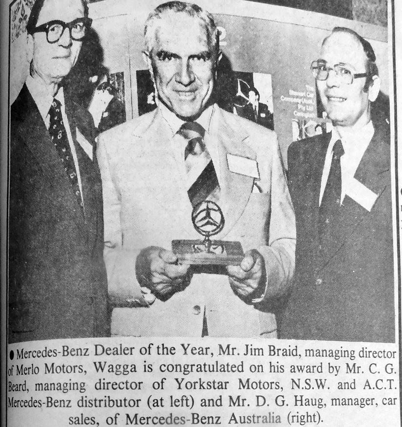 - Mr Jim Braid, managing director of Merlo Motors, was named as “Mercedes-Benz Dealer of the Year”. Both of Mr Braid’s sons also hold executive positions in Merlo Motors.