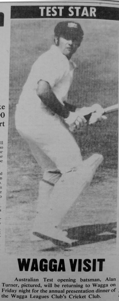 - Australian Test opening batsman, Alan Turner, is returning for the annual presentation dinner of the Wagga Leagues Club Cricket Club.