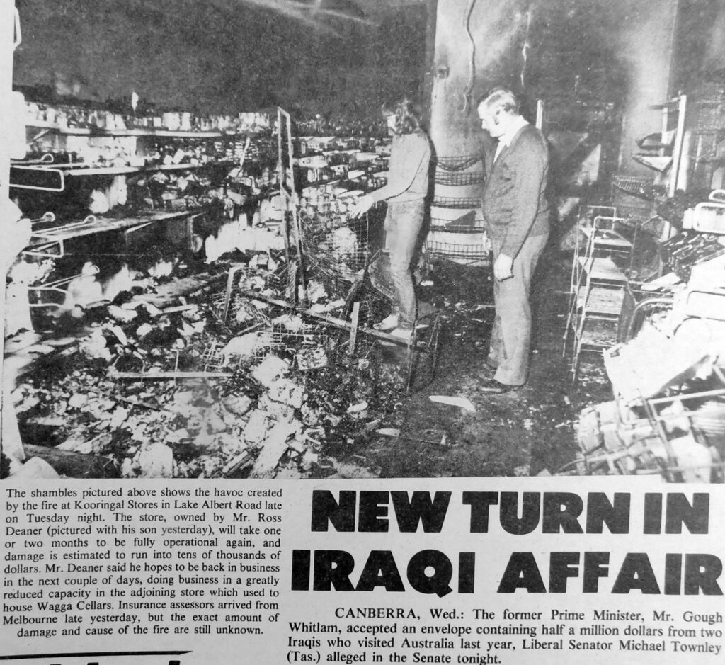 - Kooringal Stores in Lake Albert Road, owned by Ross Deaner, was badly damaged by fire, and it is expected to take one or two months to be fully operational again.