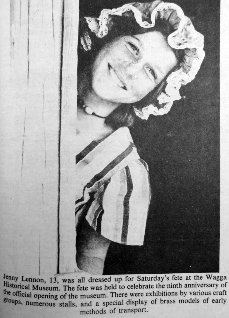 - Jenny Lennon, 13, is pictured all dressed up for Saturday’s fete at the Wagga Historical Museum. The fete commemorated the ninth anniversary of the official opening of the museum.