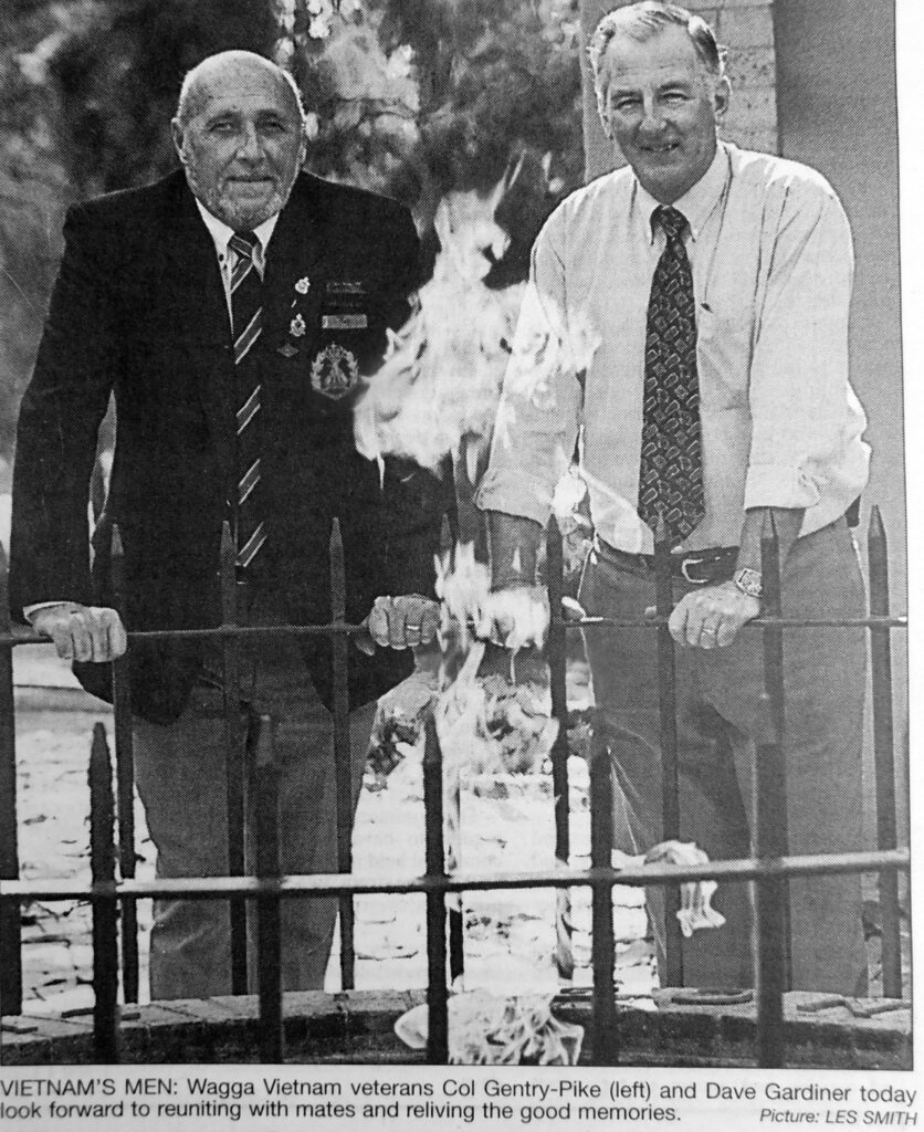 - Wagga Vietnam veterans, Col Gentry-Pike and Dave Gardiner, are pictured at Wagga’s War Memorial, looking forward to Anzac Day and reuniting with mates.
