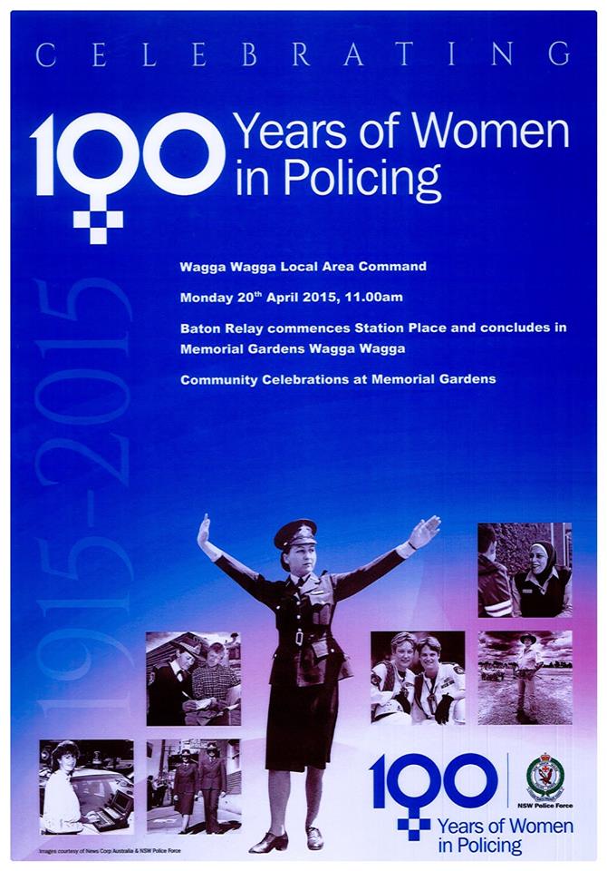 Wagga will celebrate 100 years of women in policing this Monday, 20th April at Victory Memorial Gardens from 11am.