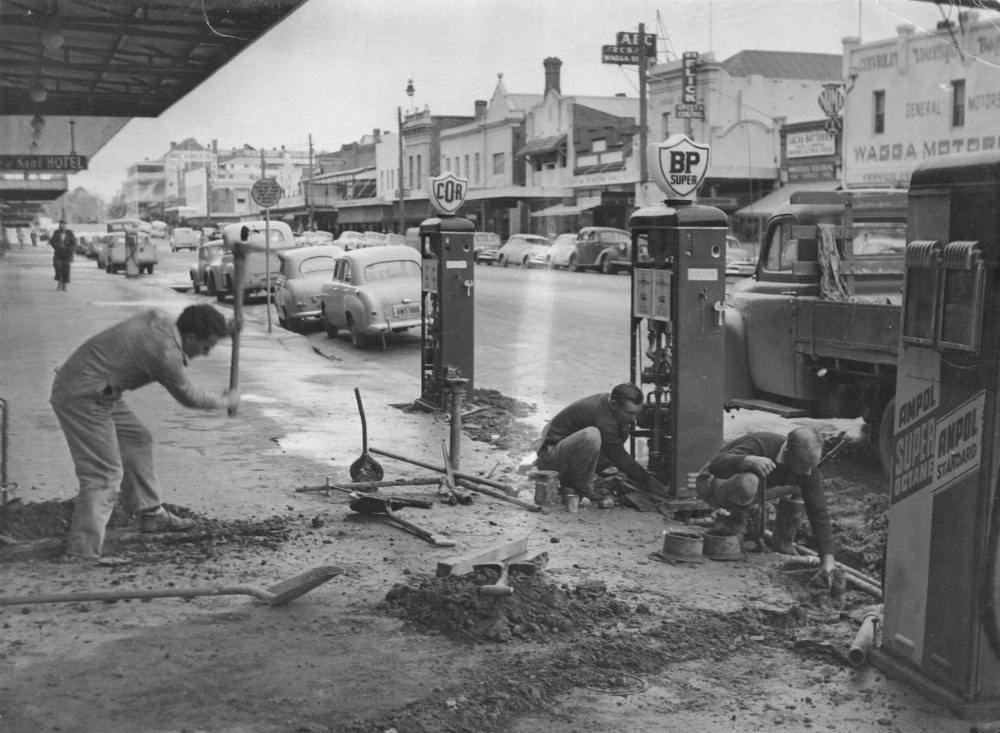 Kerbside verandah posts and petrol bowsers in Wagga Wagga were restricted and discouraged by Wagga City Council from the late 1920’s. https://trove.nla.gov.au/newspaper/article/142814873/15635573