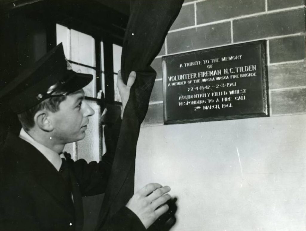 A memorial for fireman Norman Cecil Tilden who was killed March 2, 1961 while responding to a fire in Tarcutta Street. His vehicle collided with a car at the corner of Baylis and Morrow streets. Picture: Lennon Collection.