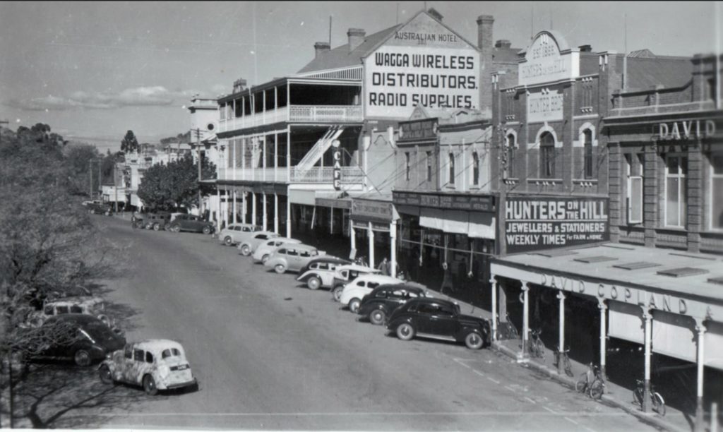 Many of Wagga’s well-known businesses of the 1930’s can be seen in this photo taken in Fitzmaurice Street, Wagga Wagga, including, the Australian Hotel, White Rose Cafe, Hunters and David Copland’s. But what was Wagga Wireless Distributors?